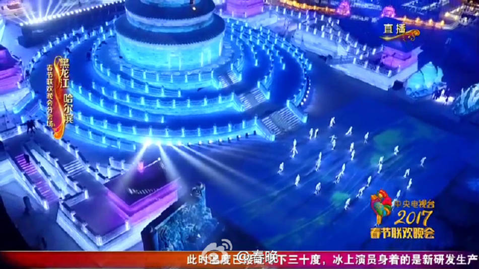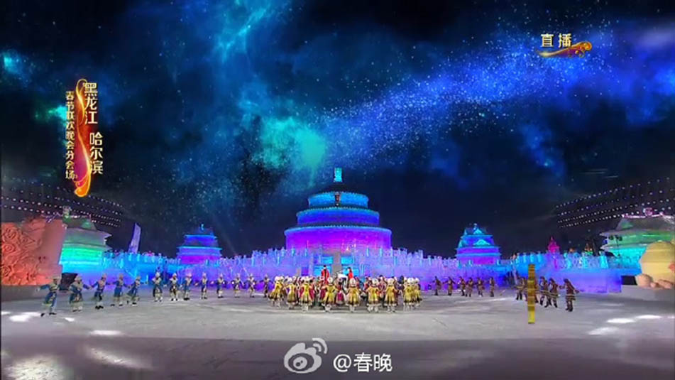 哈爾濱分會(huì)場(chǎng)以“天壇祈年殿”為原型,故宮角樓為配景,將四組雪雕作為前景,共同組成360度無(wú)死角的冰舞臺(tái)。舞臺(tái)上設(shè)置能自由連通的不同空間,使人與冰雪增加更多維度的交流互動(dòng),配合上色彩和節(jié)奏,打造成一個(gè)如夢(mèng)似幻的冰雪童話(huà)世界。