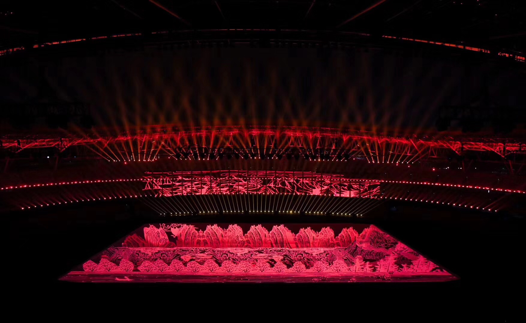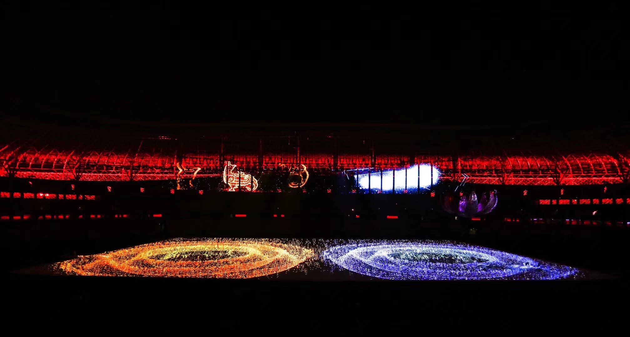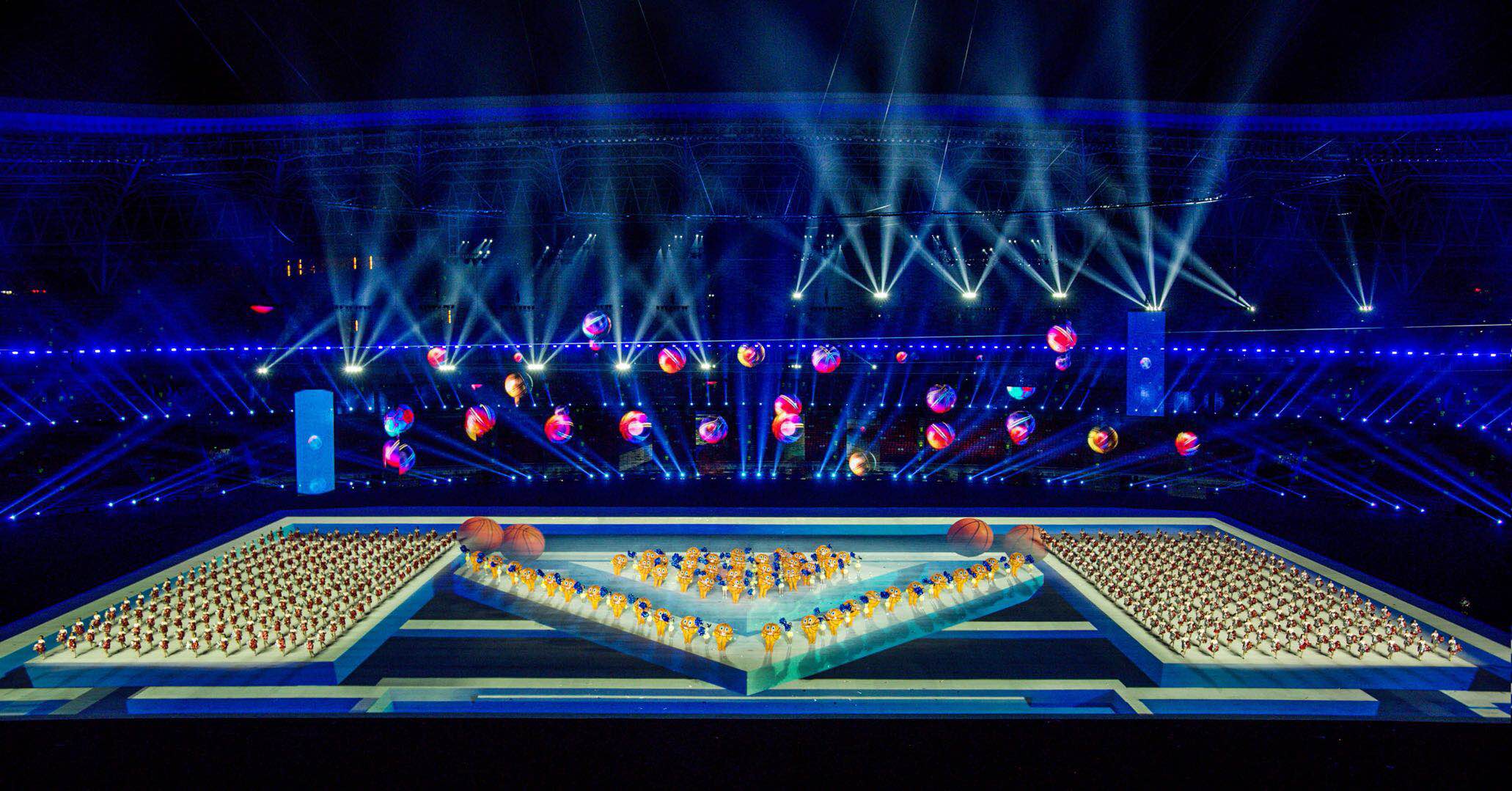 運(yùn)動(dòng)會(huì)開(kāi)閉幕式整體設(shè)計(jì)的核心理念為“奮斗幸福觀”,開(kāi)幕式的主題為“奮斗新時(shí)代“,閉幕式將以“幸福新征程”為主題與之呼應(yīng)。開(kāi)幕式演出運(yùn)用了大型燈光設(shè)備、舞臺(tái)機(jī)械裝置、高清投影設(shè)備、懸掛表演裝置、先進(jìn)音響設(shè)備、空中飛行設(shè)備等多種技術(shù)手段,形成地面、舞臺(tái)、空中三維藝術(shù)呈現(xiàn)形式,將中國(guó)傳統(tǒng)文化與國(guó)際先進(jìn)科技進(jìn)行完美結(jié)合,形成一臺(tái)國(guó)際化高水準(zhǔn)的全景化演出。