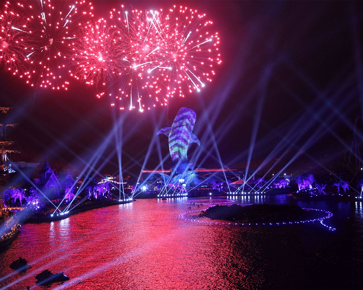 【一場燈光與科技的完美邂逅】浩洋燈光魅力助陣珠海長隆海洋王國中心湖大型匯演《海洋保衛(wèi)戰(zhàn)》壓軸上演