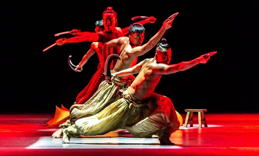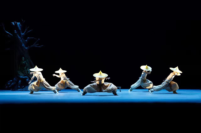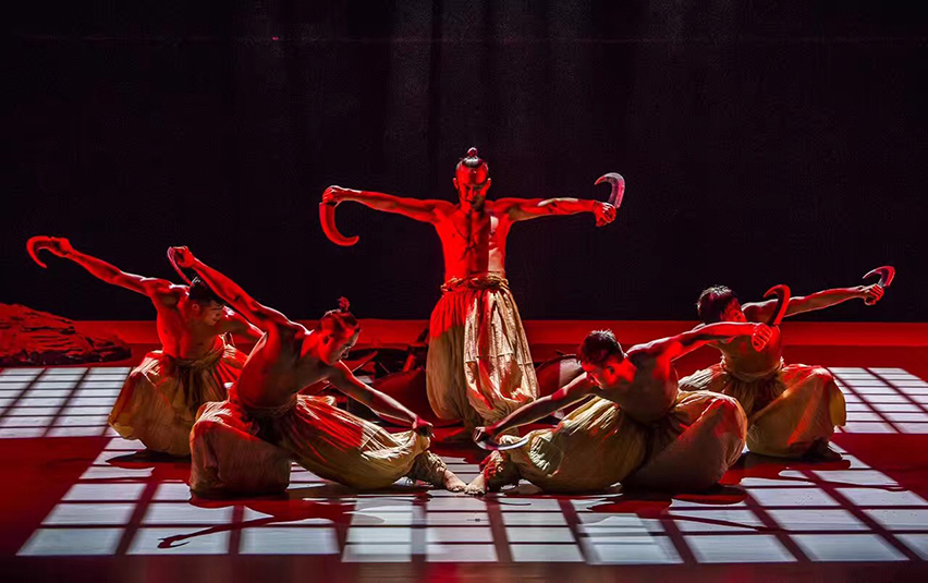 《巫卡調恰》的漢語意思是外婆的歌謠,這部舞蹈詩的創(chuàng)作植根于當?shù)孛缱逦幕?,又拓展到整個苗族社會,通過巫卡(外婆)吟唱古歌這一主線,詮釋了苗族遷徙史以及苗族社會生活的各種習俗,具有強烈形式感和邏輯性。