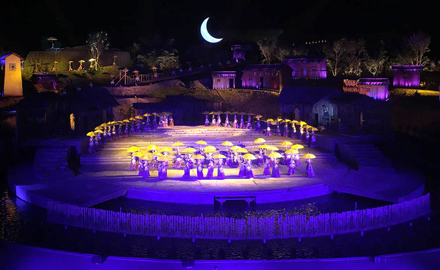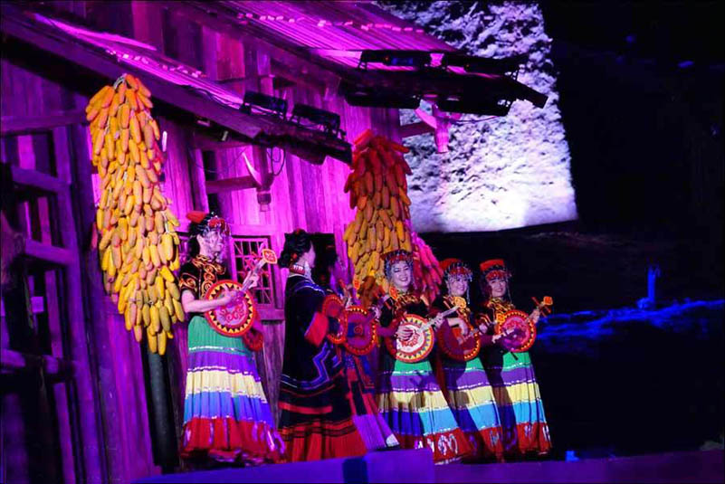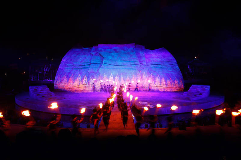 《阿惹妞》是目前中國第一臺火秀實(shí)景劇,該劇全長60分鐘,共分為5個篇章,從民族源起的腳步展開,講述了阿惹妞情與愛的生命畫卷。該劇以“火”作為彝族的生命圖騰貫穿始終,呈現(xiàn)了“火”作為一個民族情感的載體而展開的生命傳奇,具有濃厚的彝族文化風(fēng)情。
