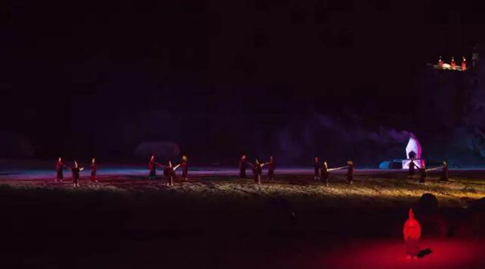 大型藏族實(shí)景劇《文成公主》主要講述文成公主入藏歷經(jīng)艱難的征途和曲折起伏的心路歷程,演繹大唐盛世的愛情傳奇,傳唱漢藏和美的動(dòng)人史歌。該作品分為“大唐之韻”、“天地梵音”、“藏舞大美”、“藏舞大美”及“藏舞大美”五幕,深度融入漢藏歷史文化、民族風(fēng)俗、自然景觀等,引入了大唐歌舞和流傳久遠(yuǎn)的藏舞、藏戲、佛號(hào)念唱等,通過人工舞臺(tái)與自然山水的結(jié)合,用高科技的手段呈現(xiàn)非物質(zhì)文化遺產(chǎn),把戲劇、音樂、舞蹈和現(xiàn)代舞美手段融為一爐,構(gòu)成華美樂章。