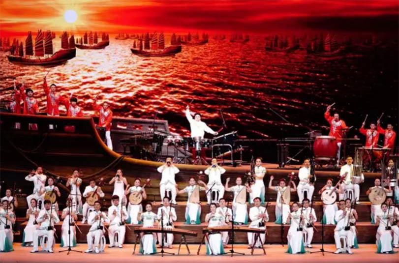 整場文藝晚會具有東西方交融、歷史和未來交融、傳統(tǒng)和科技交融以及不同藝術(shù)間交融,多種交融的觀點和方法始終貫徹到每個主題。器樂和戲曲的生動表演展示中華文化底蘊和輝煌歷史,青花絲綢與芭蕾藝術(shù)結(jié)合、鋼琴與繪畫相結(jié)合體現(xiàn)中外藝術(shù)有機融合和創(chuàng)新,彰顯文化自信,聚盛世中國之璀璨,展“一帶一路”之風(fēng)采。