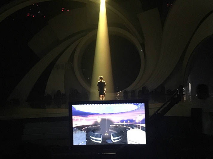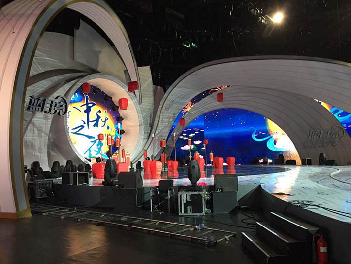 為更好地契合中秋節(jié)溫馨團(tuán)圓的氛圍,湖南衛(wèi)視2016中秋之夜緊扣“花好月圓”的主題,在舞臺上勾勒花瓣綻放的造型,打造了一個“小而美”的精致舞臺,花瓣的中心恰似一輪中秋月,一束束的燈光從圓月的輪廓上放射出來,成為整個舞臺的焦點。