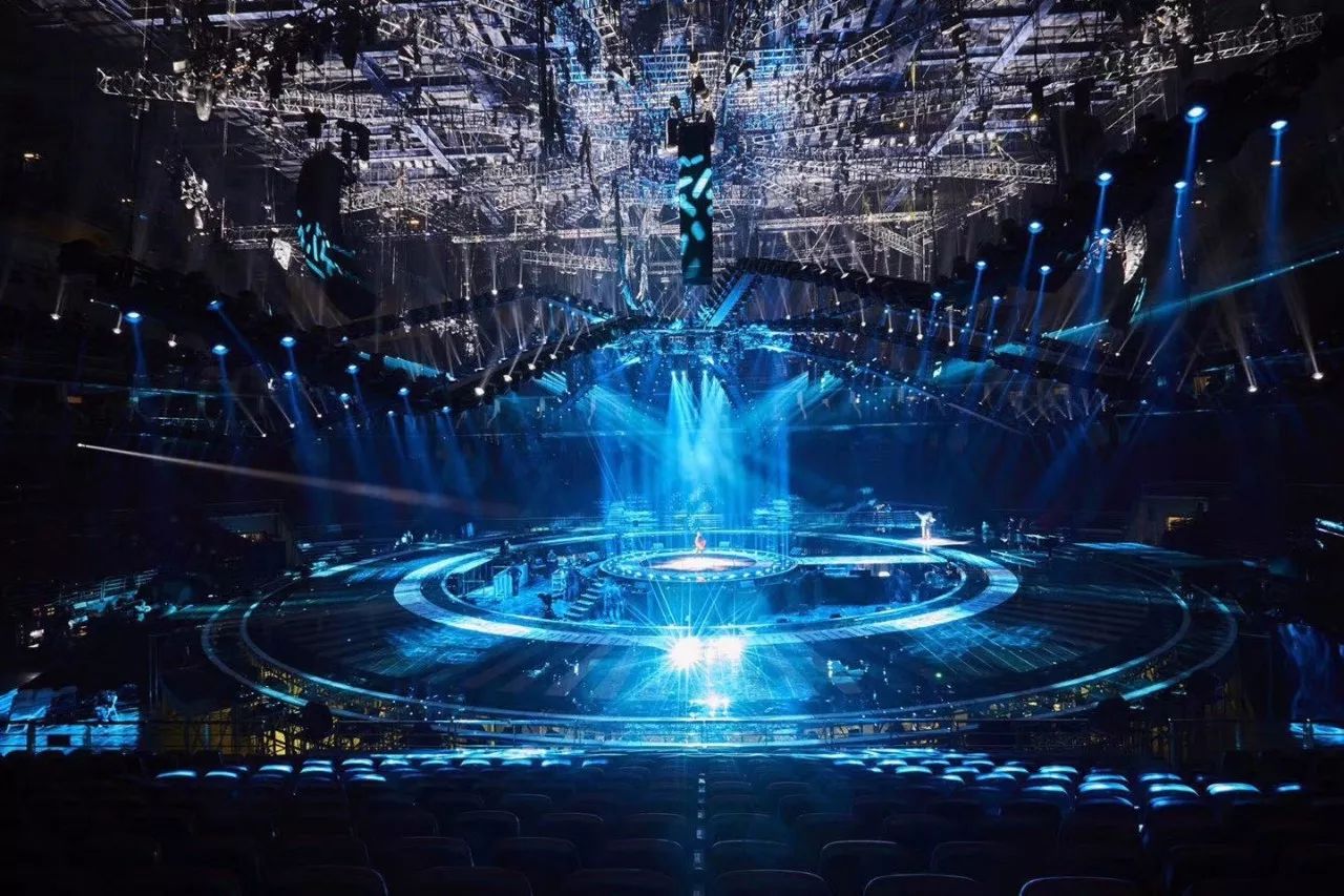 追求新亮點的江蘇衛(wèi)視今年刷新了演唱會舞臺:四面臺升級為360度全景巨型圓舞臺,給觀眾帶來前所未有的視覺沖擊;機械燈臂組成變形空間站,天幕地屏配合猶如浩瀚宇宙。根據(jù)比利時的燈光設計師Ignace介紹,去年所有構造和場景都是為扁長型舞臺而設計,今年所有設計都是為了讓觀眾感受到前所未有的一種“沉浸感”,“(每一個區(qū)域)觀眾到舞臺距離一致,這和去年有很大的不同,觀眾的感受獨具一格,是宇宙的感覺。”