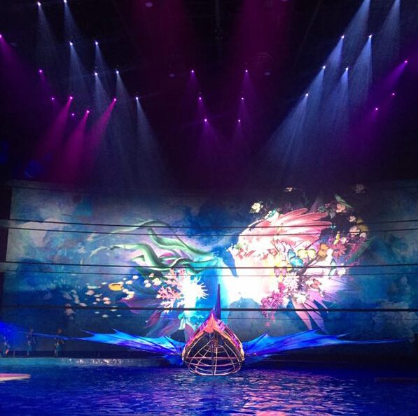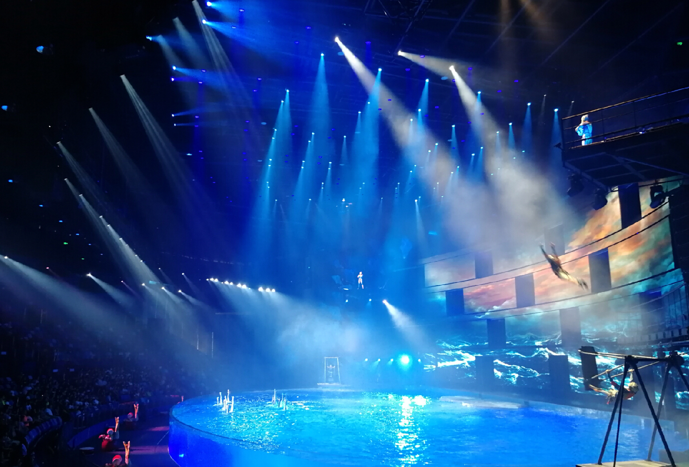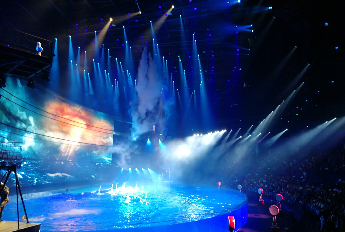 演出中,浩洋電子全能王三合一電腦燈G12HYBRID、切割燈V3000P、圖案燈V2500S、LED PAR燈A51-E近400臺(tái)專業(yè)舞臺(tái)燈光設(shè)備為現(xiàn)場(chǎng)助陣。浩洋燈光設(shè)備投射出炫目的燈光,與現(xiàn)場(chǎng)的煙霧、水面特效、無(wú)人機(jī)、各種大型自動(dòng)化舞美機(jī)械在內(nèi)的國(guó)際頂尖舞臺(tái)技術(shù)相互配合,融合水中芭蕾、空中藝術(shù)、花式跳水等眾多表演元素,共同呈現(xiàn)原創(chuàng)鉅制,還原了傳說(shuō)中神秘古老的“亞特蘭蒂斯”世界。