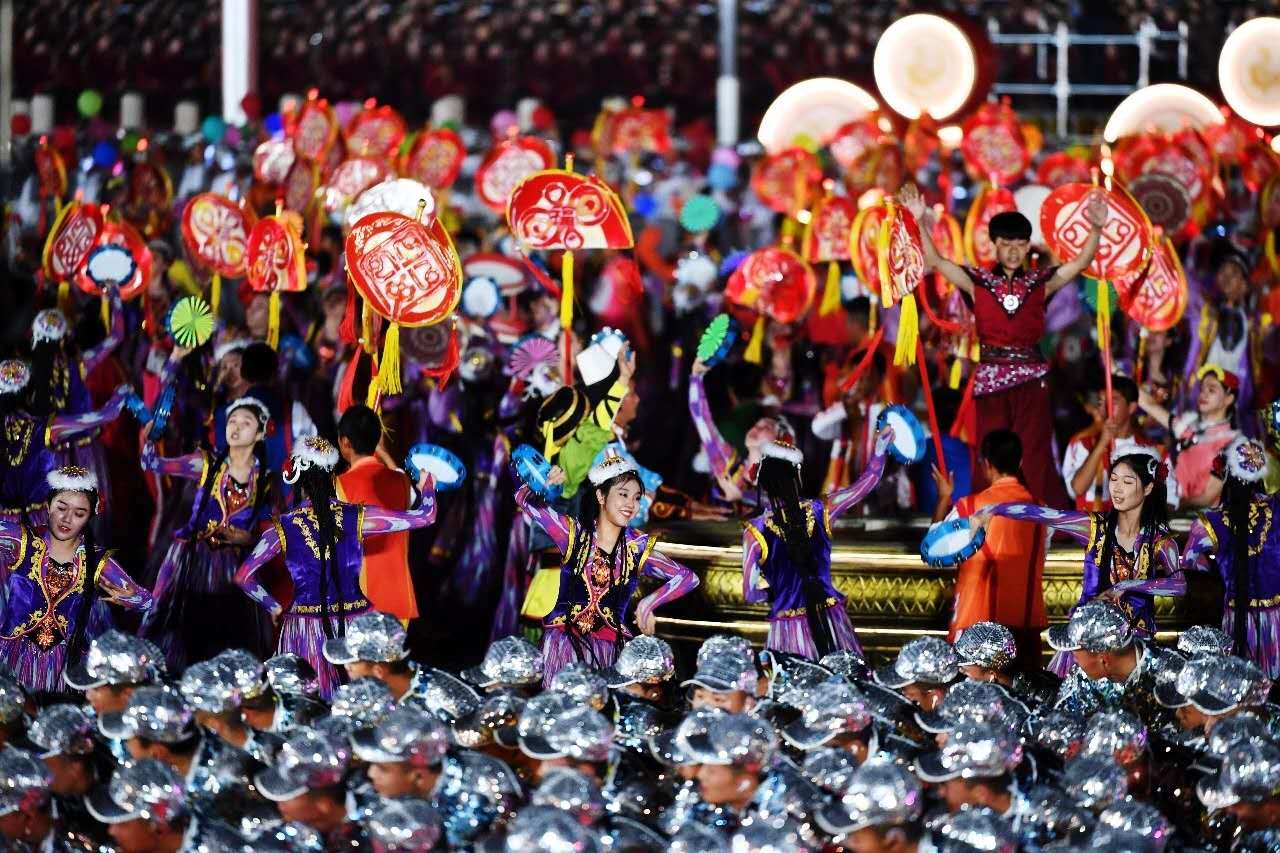 10月1日晚上,在天安門廣場舉行國慶70周年聯(lián)歡活動,14億人民的激情被點(diǎn)燃。其中聯(lián)歡活動由“紅旗頌”“我們走在大路上”“在希望的田野上”“領(lǐng)航新時代”4個篇章。整個活動由主題表演、中心聯(lián)歡表演、群眾聯(lián)歡和煙花表演四個功能表演區(qū)組成。據(jù)了解,今年的群眾聯(lián)歡活動由近6萬余名首都各界群眾組成