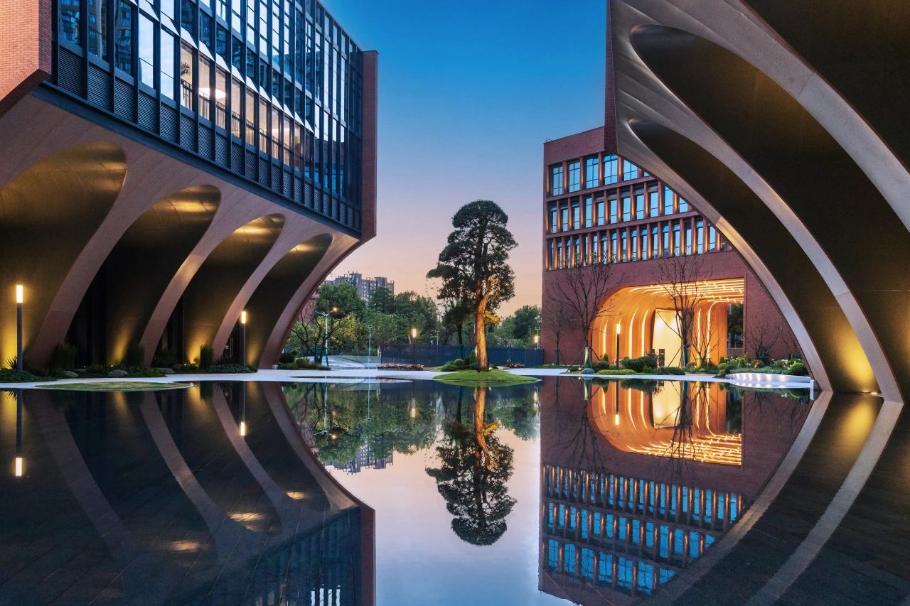 悠悠長江畔,融融東西學(xué)。在中國武漢市洪山區(qū),武漢貝賽思國際學(xué)校,一座充滿歷史感與現(xiàn)代美的建筑北臨長江而立。校園的主體建筑采用了現(xiàn)代的施工工藝與幾何化的簡練造型,在浩洋燈光的映襯下,塑造出一所既現(xiàn)代簡練又充滿歷史莊重感的校園。