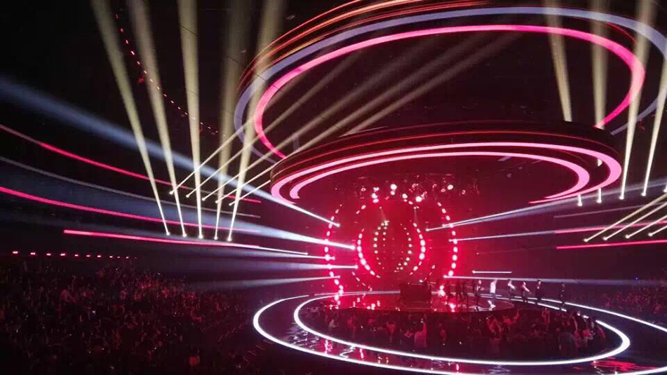 浩洋電子切割成像電腦燈V3000P擁有領(lǐng)跑行業(yè)的精準(zhǔn)切割效果,能夠平滑、自然的切割出多種圖案,均勻順滑的CMY混色系統(tǒng)、0-100%線性調(diào)光和柔光霧化效果,可呈現(xiàn)出如呼吸般自然的光色變幻。這款成功服務(wù)過南京青奧會(huì)、APEC峰會(huì)和多屆央視春晚的頂級(jí)切割電腦燈,在歌會(huì)現(xiàn)場也被用作各種場景的切割造型和人物面光處理,配合浩洋電子經(jīng)典款圖案燈V2500S,給觀眾帶去亦真亦幻的震撼視覺享受。
