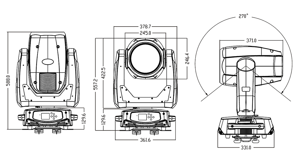 可從控臺(tái)完成更改DMX地址碼,遙控開關(guān)燈泡,機(jī)器重設(shè),聲控模式的轉(zhuǎn)換等功能