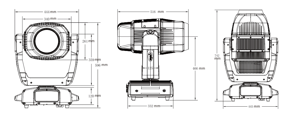 可從控臺(tái)完成更改DMX地址碼,遙控開(kāi)關(guān)燈泡,機(jī)器重設(shè)等功能