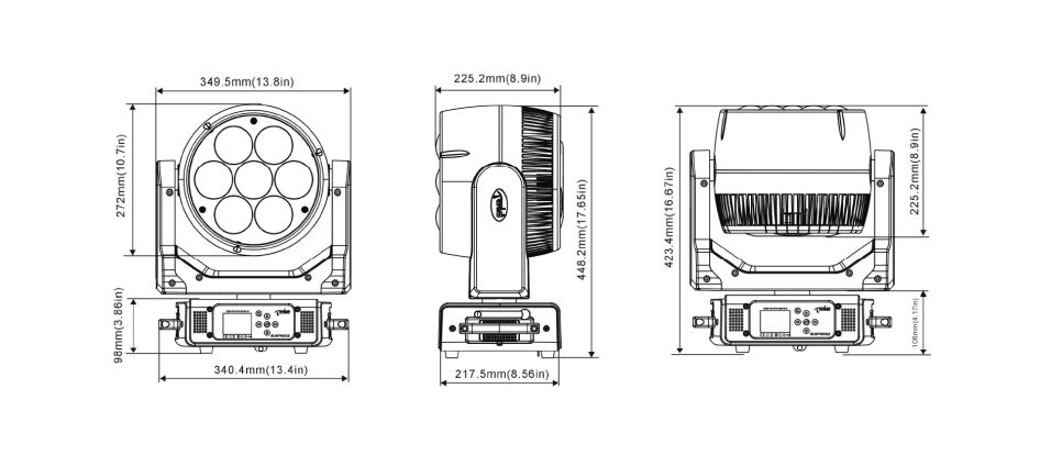變焦范圍:5.9°- 59.9°(光束角),10°-77°(光斑角)