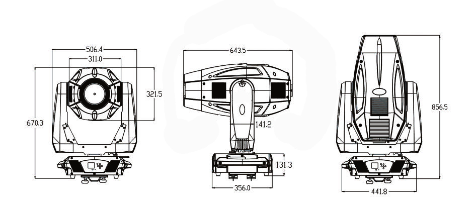 切割盤:一組由4個(gè)切角片組成可控制的光斑切角系統(tǒng),整個(gè)切角系統(tǒng)可做90°旋轉(zhuǎn)