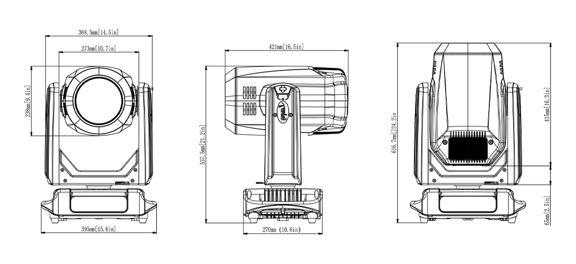 變焦范圍:光束模式:2.3°-28°;圖案模式:5.5°-42°;染色模式:11°-40°